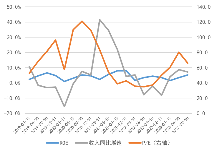 图7:A股上市文化企业ROE、收入增速及P/E情况
