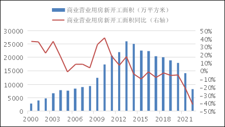 图1 我国商业营业用房新开工面积及同比