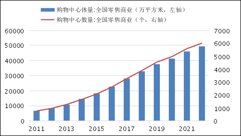 图2 我国零售商业购物中心规模