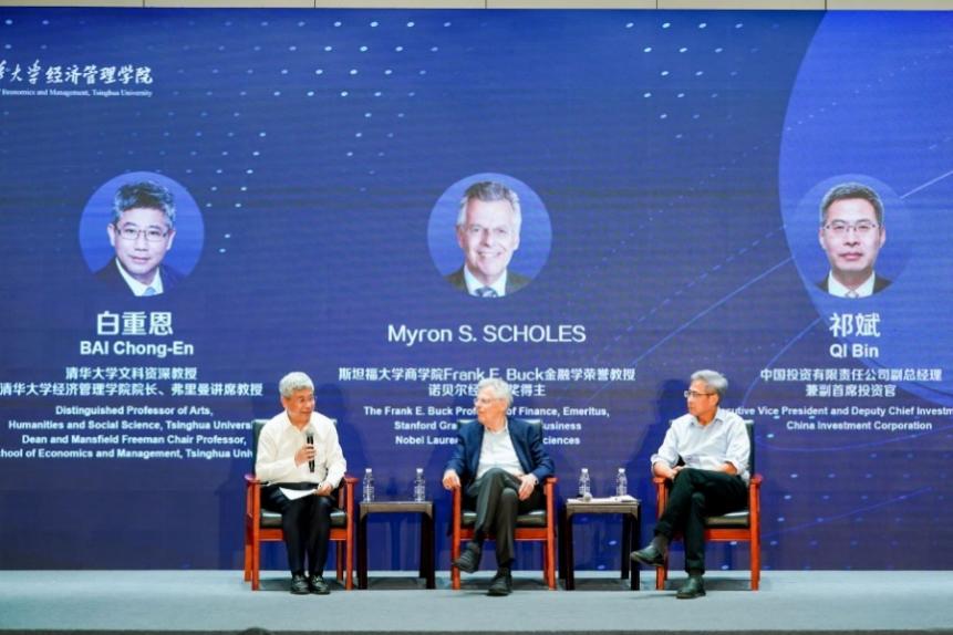 文科资深教授、经济管理学院院长、弗里曼讲席教授白重恩,中国投资有限责任公司副总经理兼副首席投资官祁斌与斯科尔斯共同展开了一场圆桌讨论,就人工智能是否会经历类似互联网的繁荣衰退周期,中美在当前地缘政治背景下的合作问题,以及通过教育如何更好地利用人工智能等问题上进行了深入探讨。