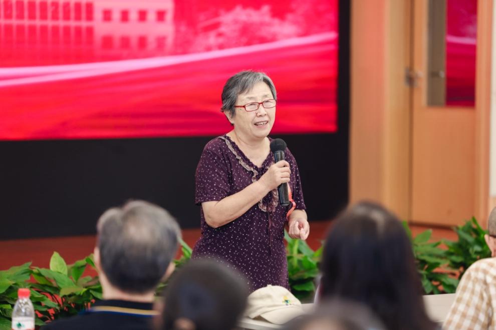 在活动的最后,靳云汇老师作为教师代表讲话。她表示,每次回到小院,都感到亲切、温暖,回顾自己在这里工作的三十年,见证了五道口从初创到蓬勃发展的历程,心中充满了感激与自豪。她首先祝贺校友们成长为家庭的中坚力量、成长为社会的栋梁之才,祝贺学院取得的一系列令人瞩目的成就。随后,她对同学们表示感谢,她指出教学相长的过程不仅提升了学生的能力,也让教师们从中受益匪浅;同时,她也感谢了学院多年来给予的支持与关怀,让她在退休后仍能感受到来自五道口大家庭的温暖。最后,她以“身常健、心常安”六个字寄语在场的校友师生,勉励大家锻炼身体、修炼内心,以积极的态度面对生活中的挑战。