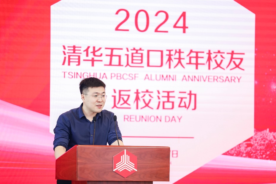 2014级博士校友代表首先表达了重返母校的激动心情。他表示,看到熟悉的场景和老师、同学们,思绪立刻被拉回到十年前初入小院的那一刻。回忆起在五道口读博的岁月,他提到,五道口的老师们不仅帮助他推开学术的大门,还让他深入了解到学术世界的发展,许多同学毕业后依然保持着对学术的热情,正是得益于老师们细心栽培。他还谈到,十年来,同学们的成长变化令人欣喜,尽管大家的职业道路各异,但那份源自五道口的情谊却始终未曾改变。最后,他祝愿母校能够培养出更多优秀的人才,继续在教育和科研领域发光发热,为国家发展贡献力量。