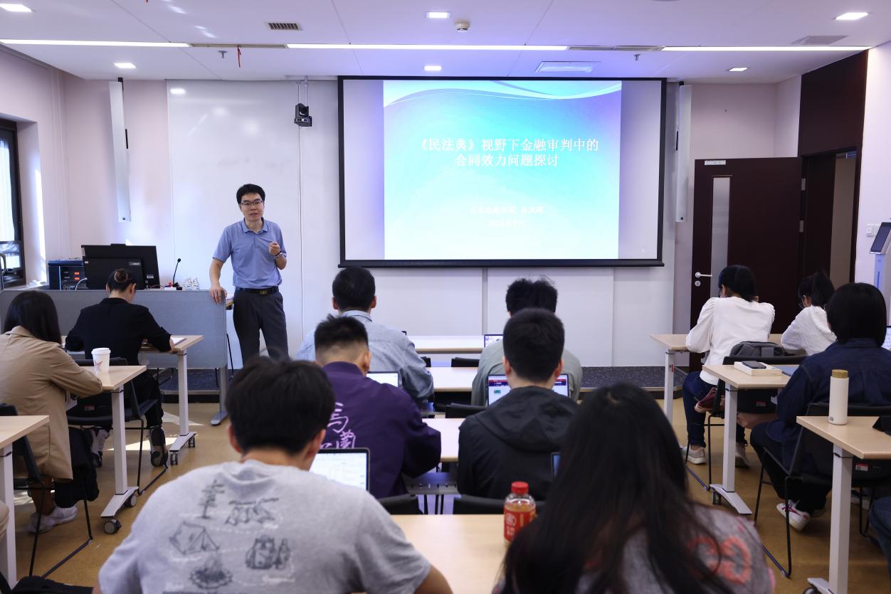 此次讲座特别邀请了北京金融法院立案庭庭长孙兆晖,他为2024级硕博新生带来了关于《民法典》视野下金融审判中的合同效力问题探讨。