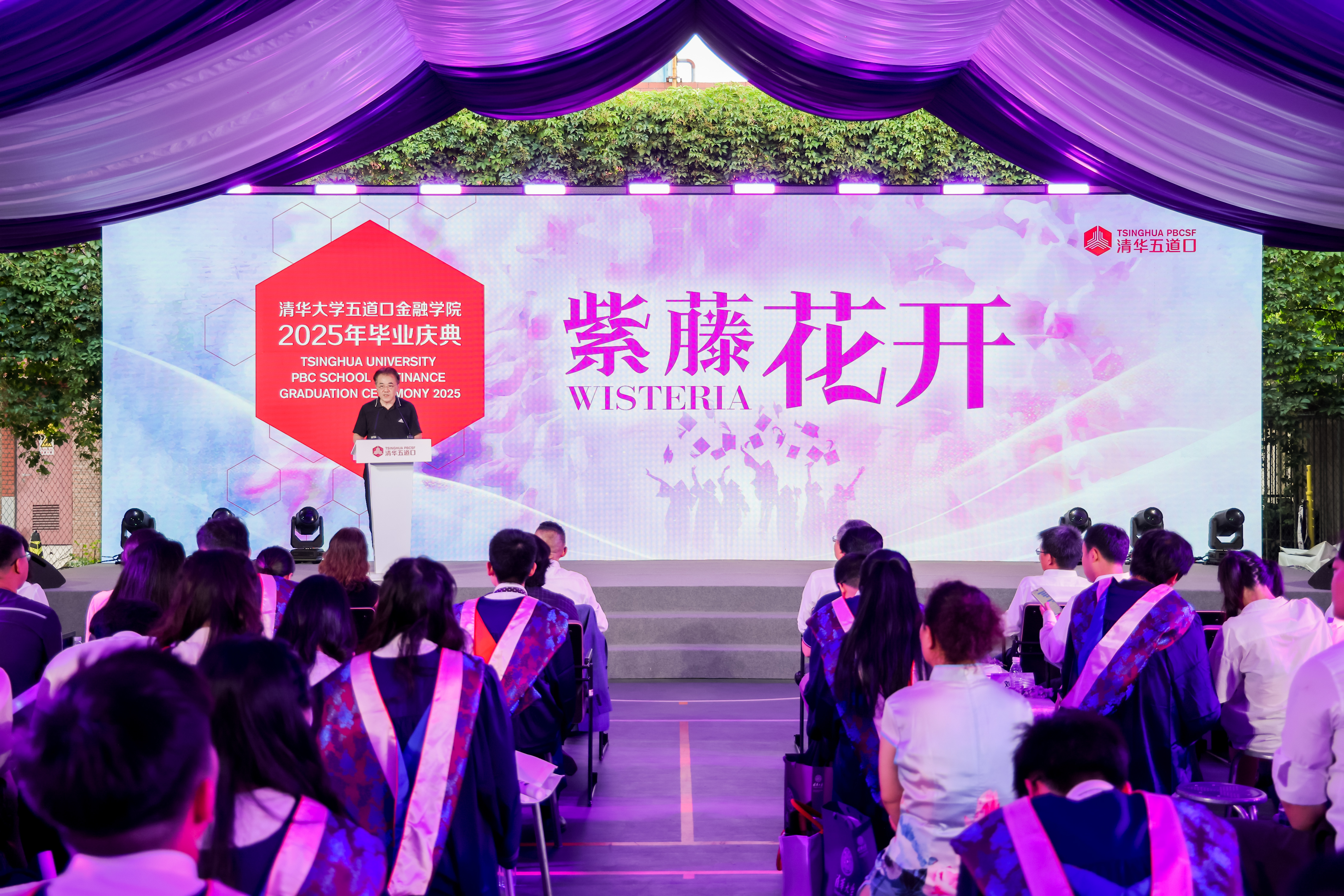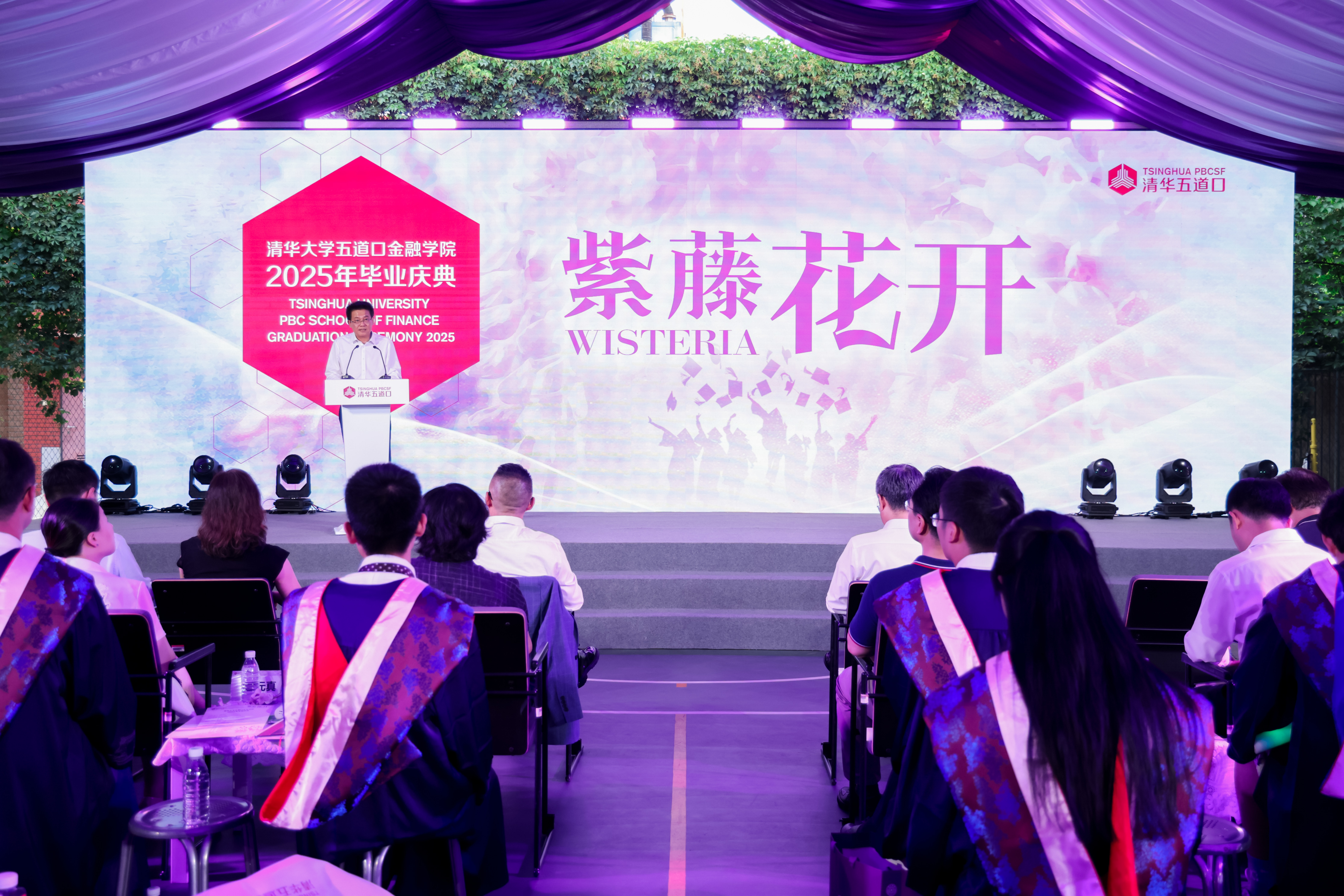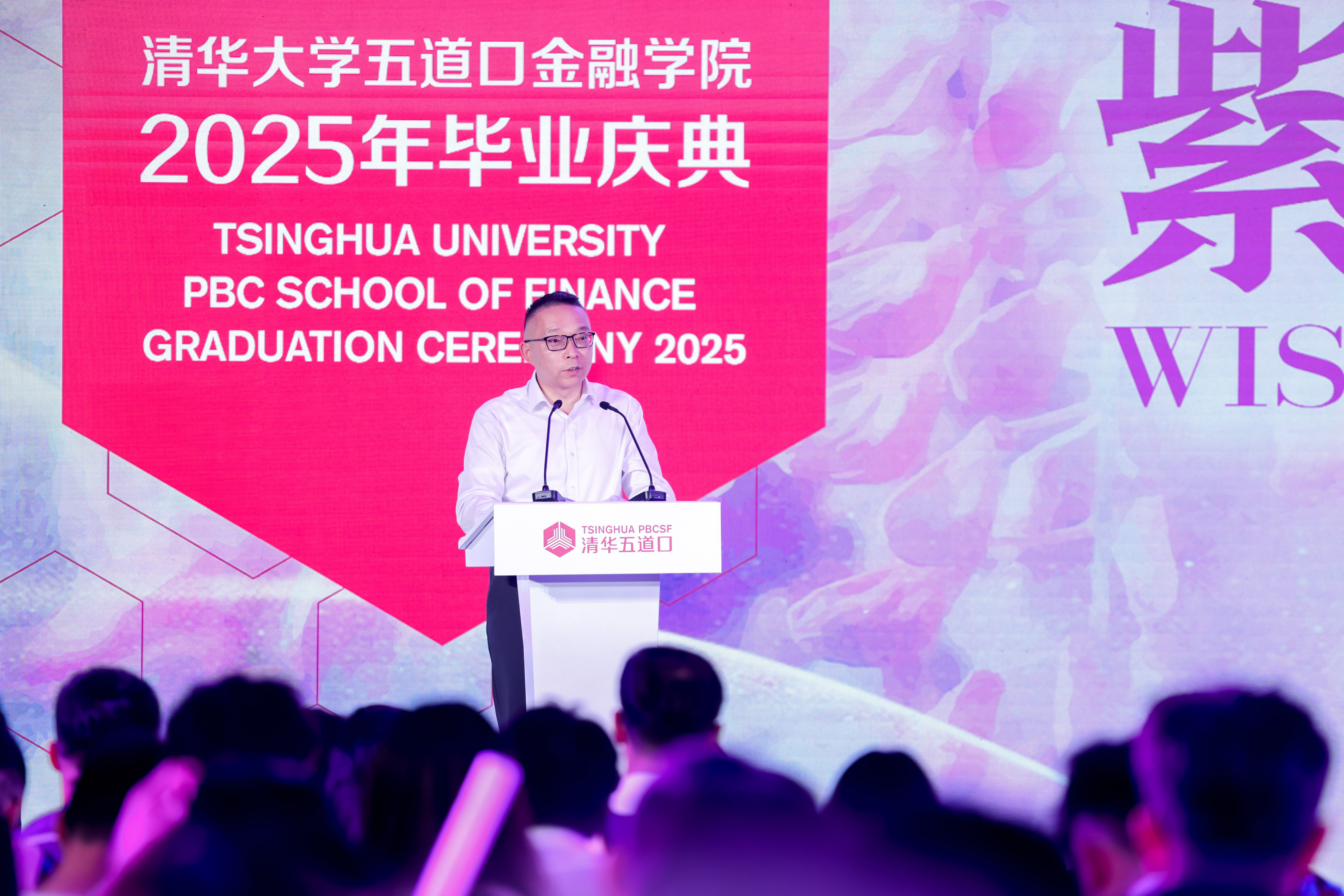 中国人民银行金融研究所所长丁志杰在典礼上发言。他表示,清华五道口毕业生们朝气蓬勃、踌躇满志,即将在各自的岗位上发光发热,他以三句“临行絮语”赠别:一是“为者常成,行者常至”,希望毕业生们脚踏实地,在金融实践中不断提升专业能力;二是“挫而不折者强,逆风挺立者胜”,希望同学们练就过硬本领、修炼豁达心态、汇聚更多志同道合的伙伴;三是“胸怀‘国之大者’,方见天地宽”。丁志杰指出,金融是国家核心竞争力的重要组成部分,愿大家跳出“小我”的局限,将个人理想融入“国之大计”,让青春与家国同频共振,带着“为天地立心,为生民立命”的豪情,以梦为马,不负韶华,在新时代的金融征程中,书写属于人生的壮阔篇章!