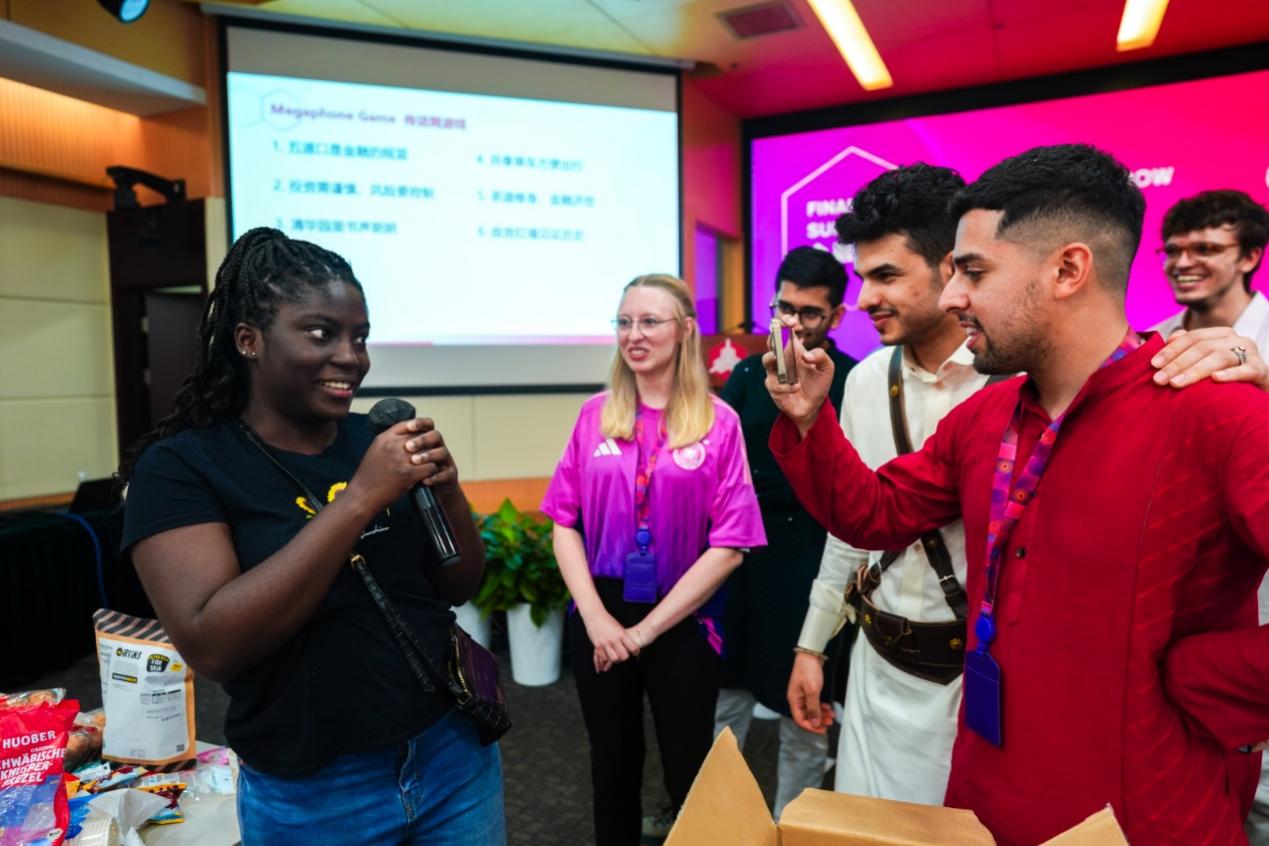 的4名2025级新生志愿者。参与学生来自于亚洲、欧洲、北美洲、南美洲、非洲、大洋洲的23个国家。学生中既有来自新兴市场国家的代表,也有来自成熟经济体的青年,多元背景为课堂讨论注入全球化视角。