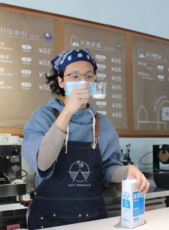 图为张书怀在念地咖啡任兼职咖啡师