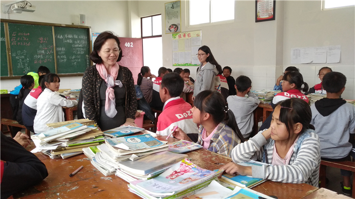图为2018年4月3日李秀兰在云南临沧斗阁中学考察普惠金融广播项目