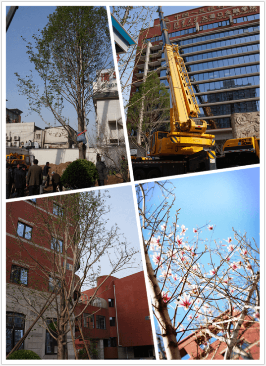 2011年8月,建院前期,我从校内其它部门调到学院,全面负责物业、修缮、餐饮、安保等多项后勤交接管理的具体执行工作。这其中,印象最为深刻的事情,当属学院主楼正门两侧两株玉兰花的移植和培育过程。