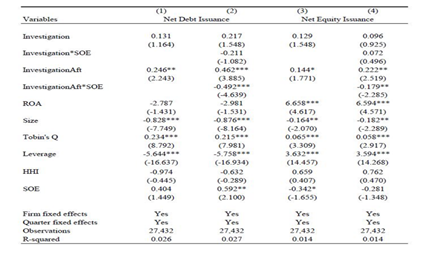 此外,数据实证结果显示,房地产行业是引发当地腐败的重要因素,从而抬升地方政府融资成本。事实发现,腐败程度和地方债成本是正相关的,房地产是地方债成本的最重要的解释变量。统计上发现,如果把腐败的案件数和房地产GDP相比较,房地产可对腐败的变量直接替代。这一统计结果表明,腐败对地方融资成本的负面影响是通过房地产渠道来实现。另一方面,中纪委报告统计显示,在查处的副部级官员中,80%的落马官员因为涉及房地产、土地交易而落马。腐败特别是副省级以上的腐败严重提高了当地地方债融资成本。因此,以上两个实证数据显示,腐败和房地产开发有着密切联系。 《反腐带给行业的是传染效应还是竞争效应?来自中国的证据》认为查处腐败国有企业可促进同行业其他民营企业的发展。图3的数据显示,如果同行业中涉腐的是一个国企,新发债数量和新发股票的数量会显著下降。但是,非国有企业的新发债和新股发行则显著增加的。这就意味着,在国营企业内部,反腐调查有很强的传染效应,调查一个企业也会影响同类的国营企业。而对民营企业或者这个行业整个其他的企业来讲是一种竞争效应。进一步的研究发现,当行业中有企业被调查后,国营企业可能暂时很难从银行拿到贷款,但是其他企业的市场份额开始上升。因此,反腐对经济有积极意义,即:反腐事件对于行业是一次资源再分配,资源更多地倾斜到了民营企业——与国进民退的刻板印象恰好相反,研究数据表明,2012年以后经过反腐的洗礼,实际上有明显的国退民进的现象。