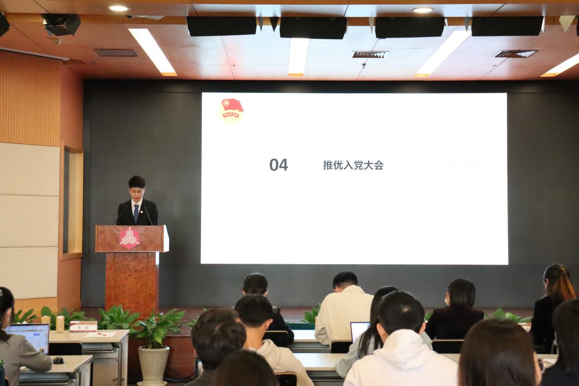 图为朱腾主持全院积极分子推优入党大会