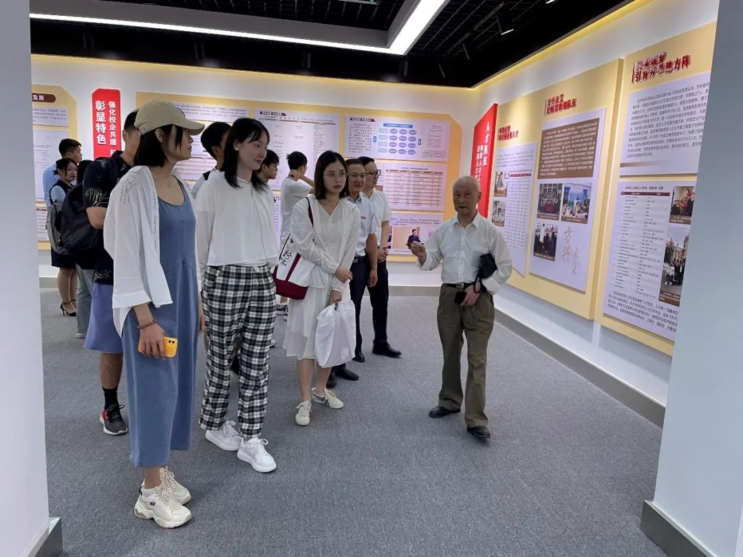 图为支队成员随汽院老教授邱春正参观湖北汽车工业学院校史馆