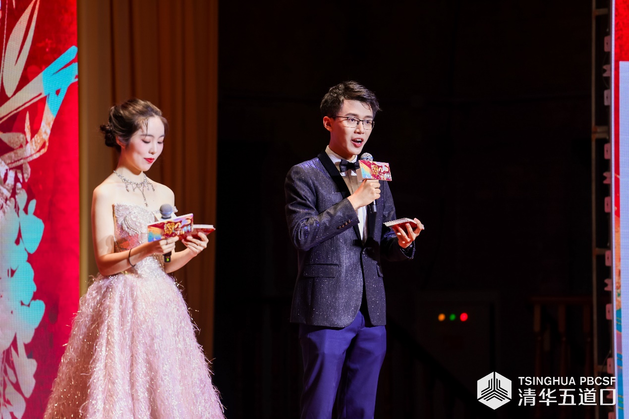 图为周雨山(右)担任2025年金融学院学生节主持人